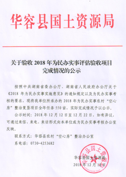 关于验收2018年为民办实事评估验收项目完成情况的公示