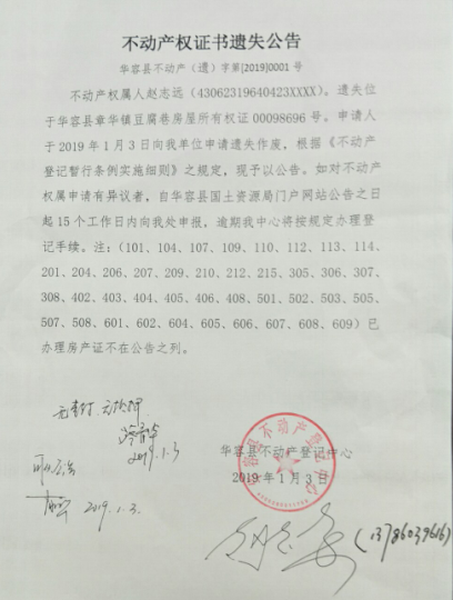 不动产权证书遗失公告【房屋所有权证(赵志远)】