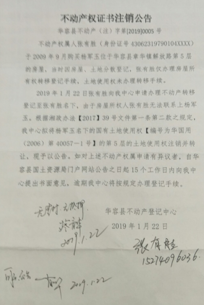 不动产权证书注销公告【国有土地证(杨军玉转张有胜)】