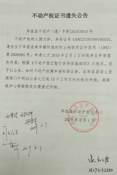 不动产权证书遗失公告【土地使用权证(颜元珍)】