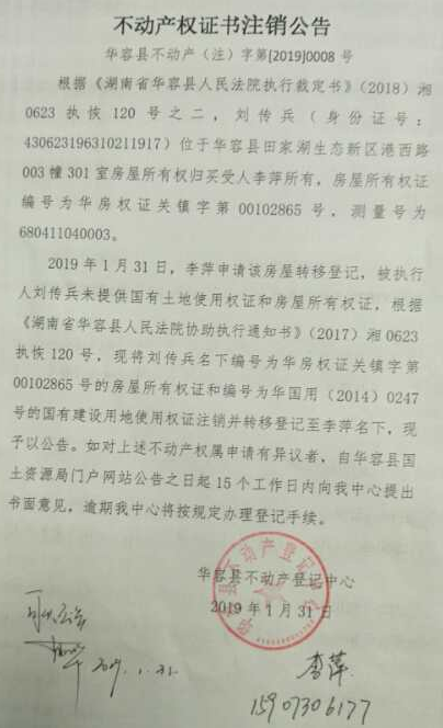 不动产权证书注销公告【国有土地证 房屋所有权证(刘传兵转李萍)】