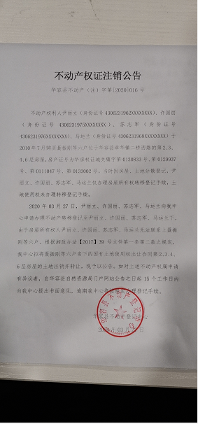 不动产权证注销公告【国有土地权(聂振刚等六户转尹丽立、许国丽、苏志军、马运兰)】