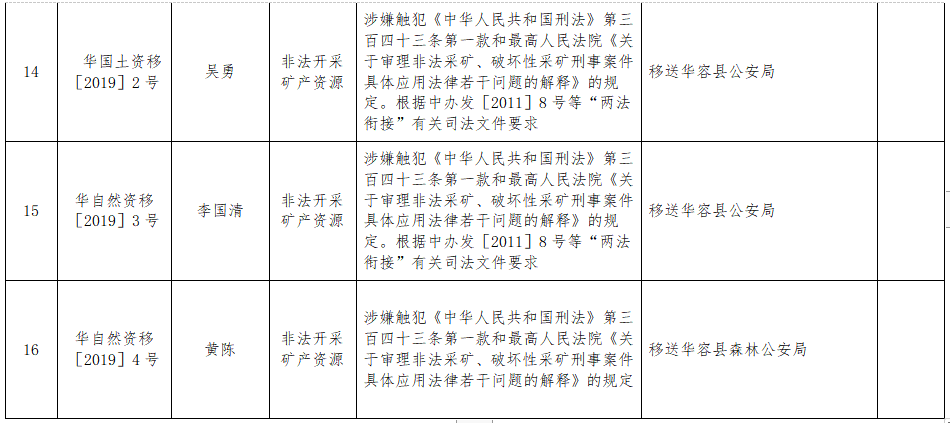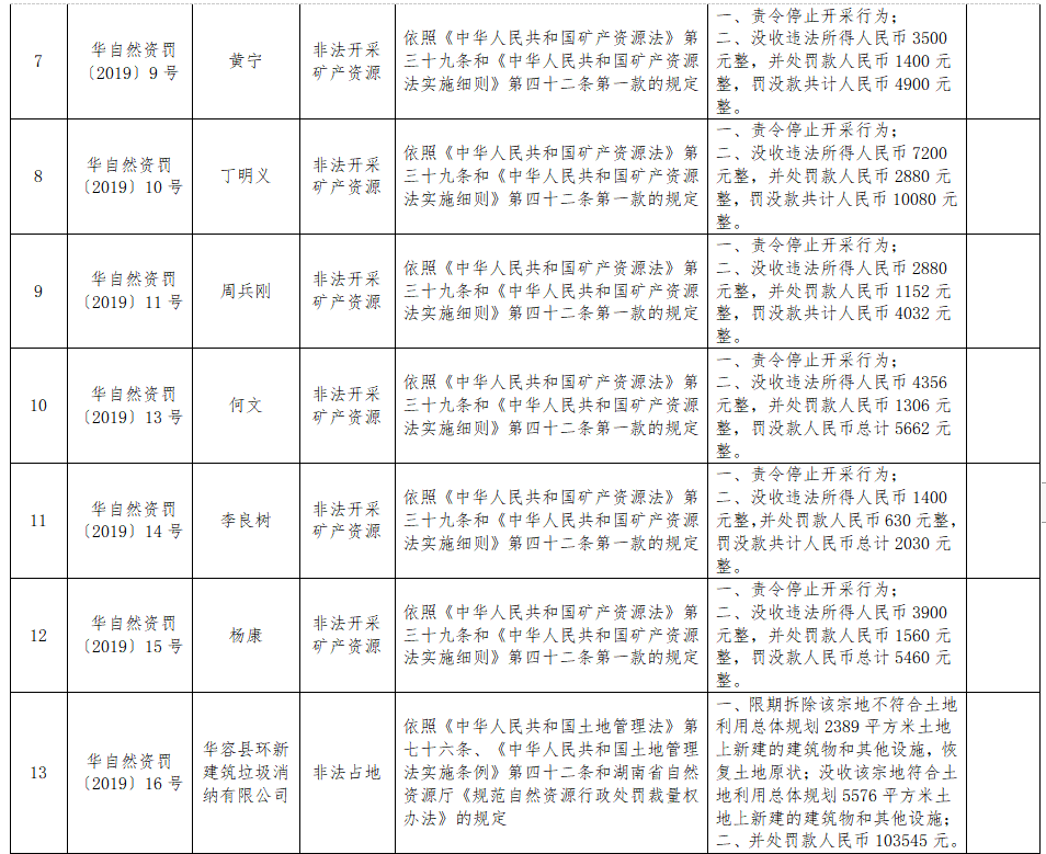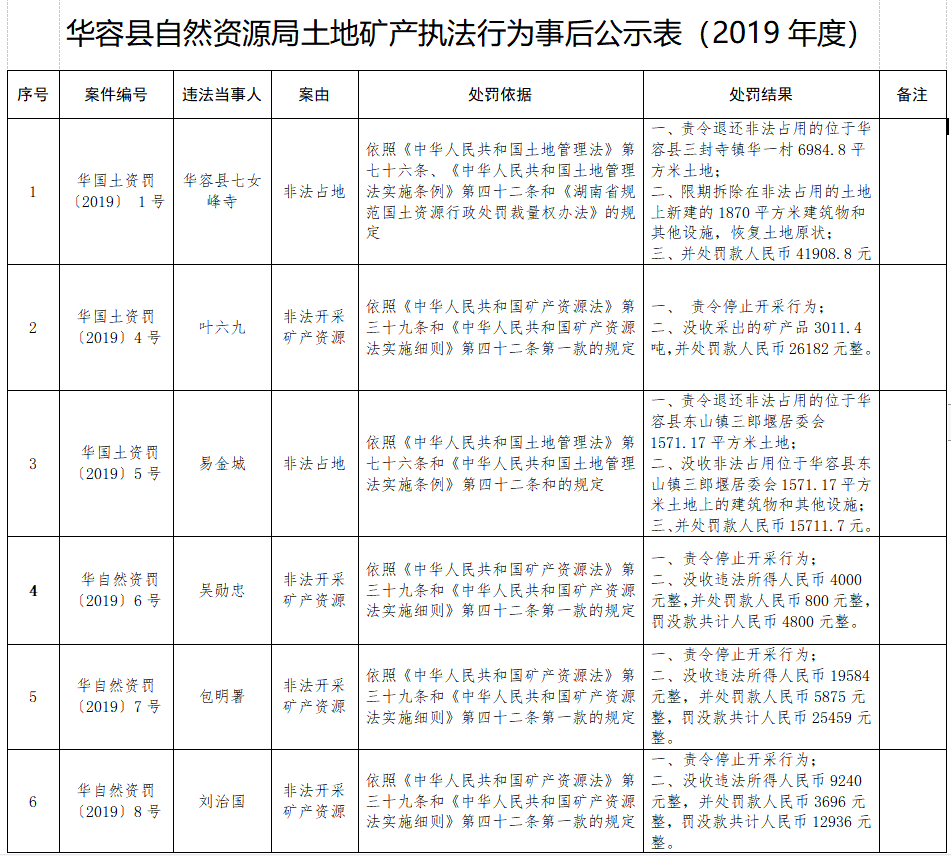 华容县自然资源局2019年度土地行政执法决定公示