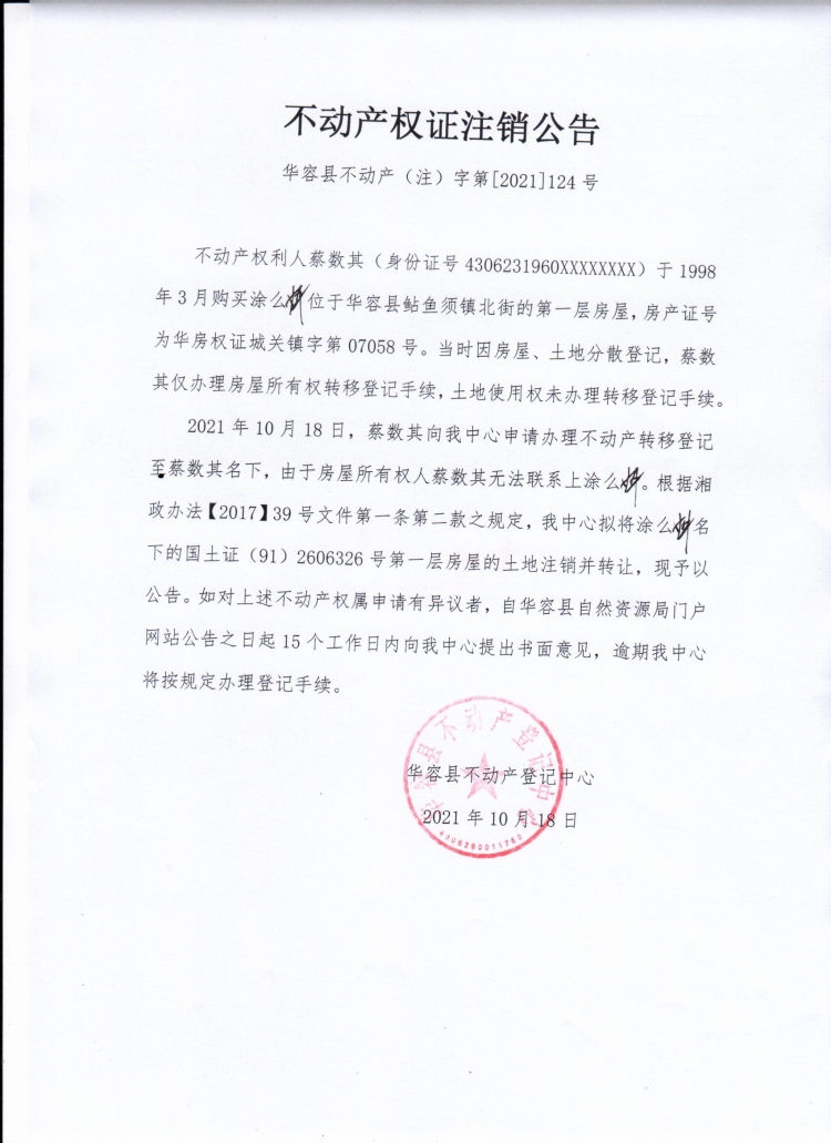 不动产权证书注销公告【(涂么㛅转蔡数其)】