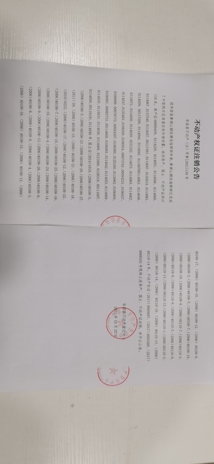 不动产权证书注销公告【华容县中医医院片区房屋】