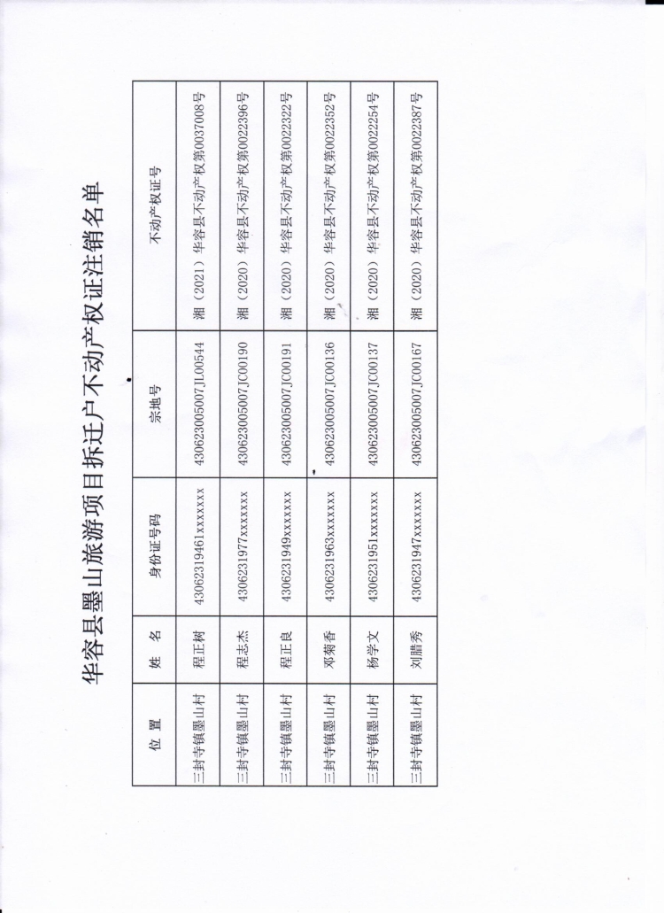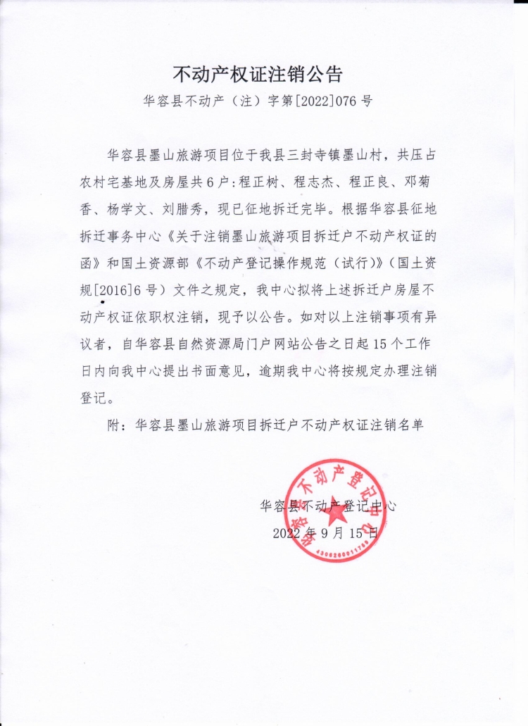 不动产权证注销公告(华容县墨山旅游项目拆迁户)