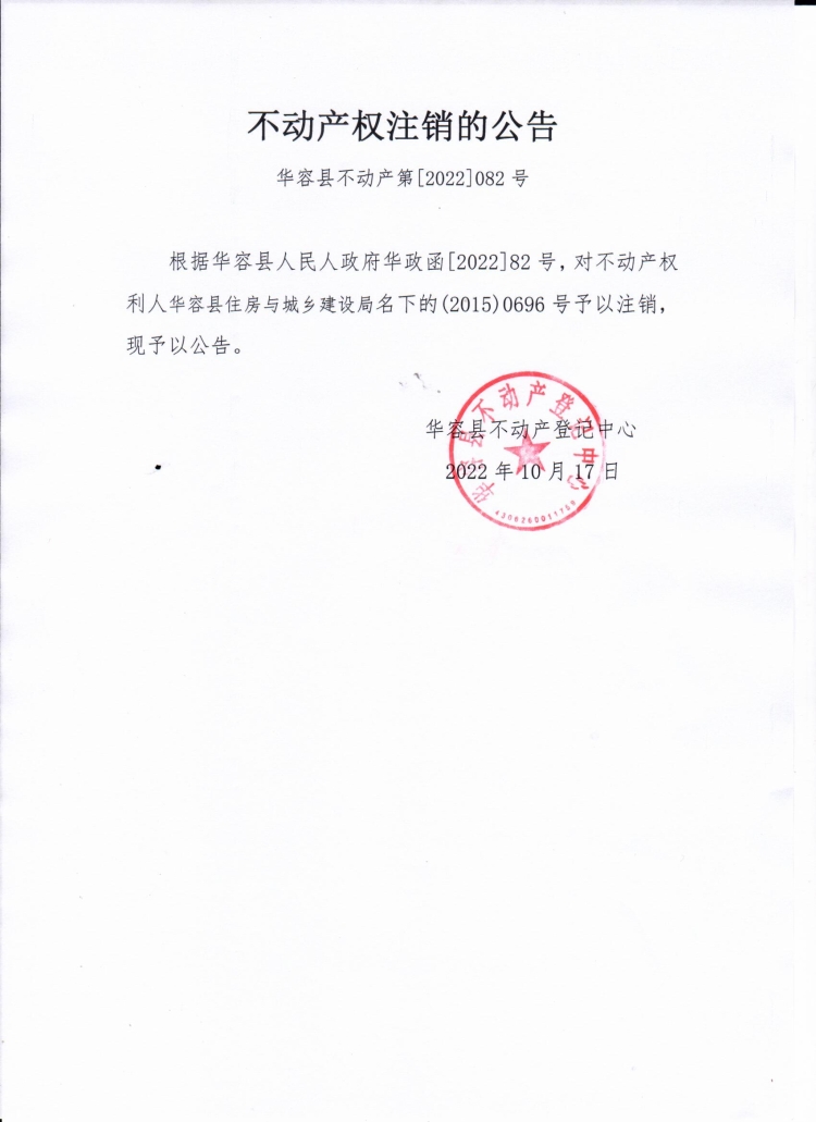 不动产权注销公告(华容县住房与城乡建设局)