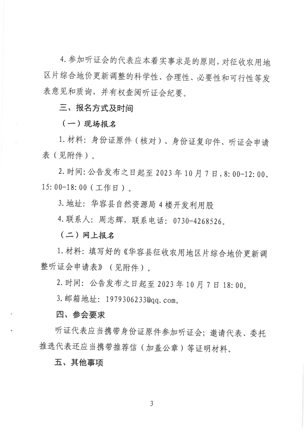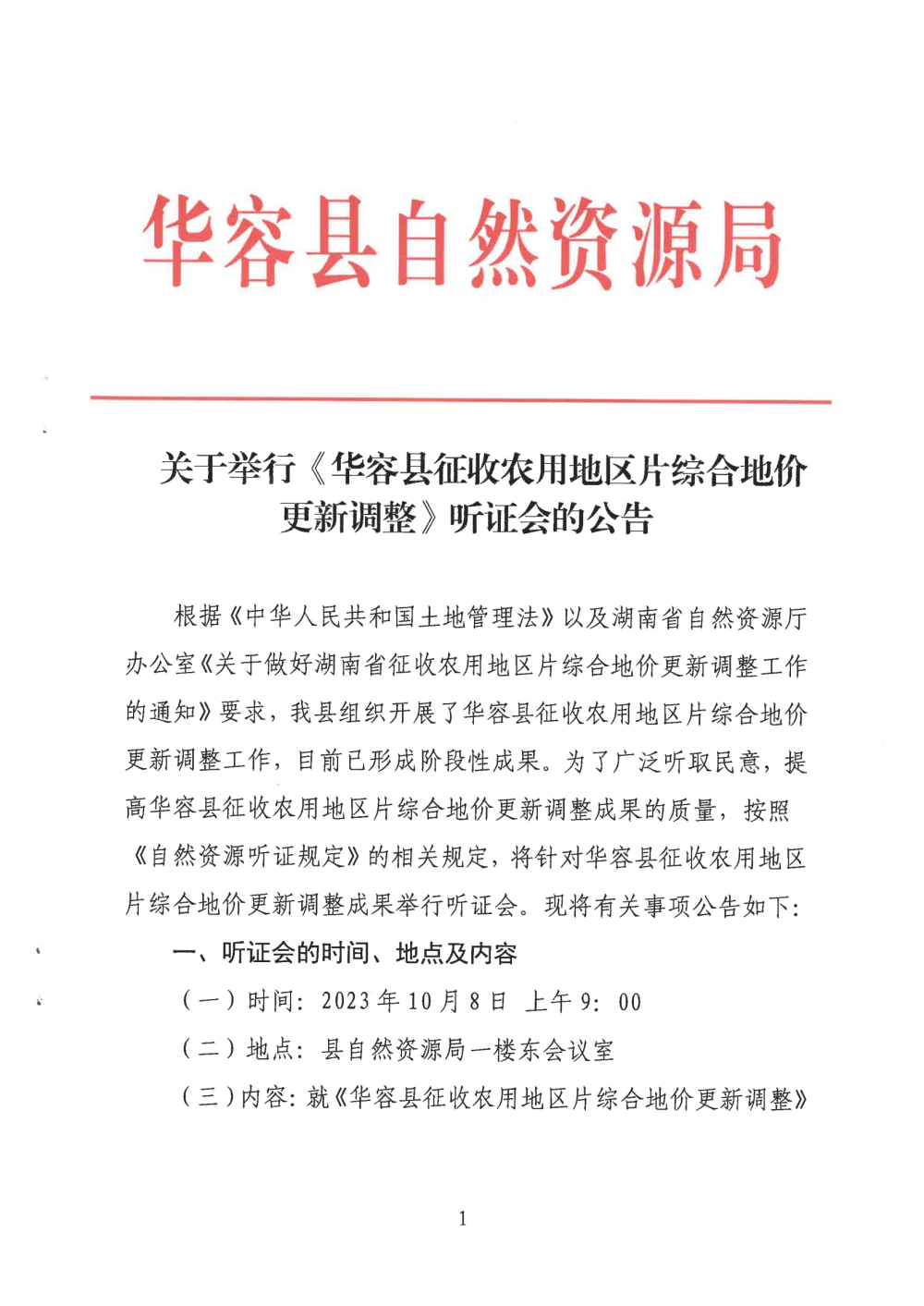 关于举行《华容县征收农用地区片综合地价更新调整》听证会的公告