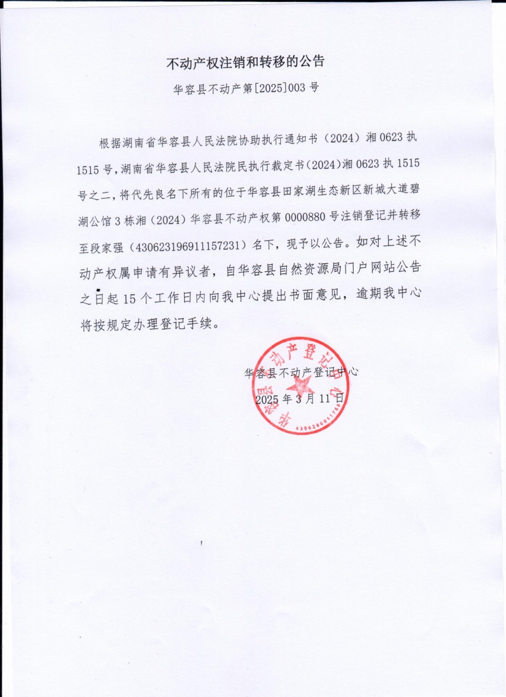 不动产产权注销和转移的公告(代先良)