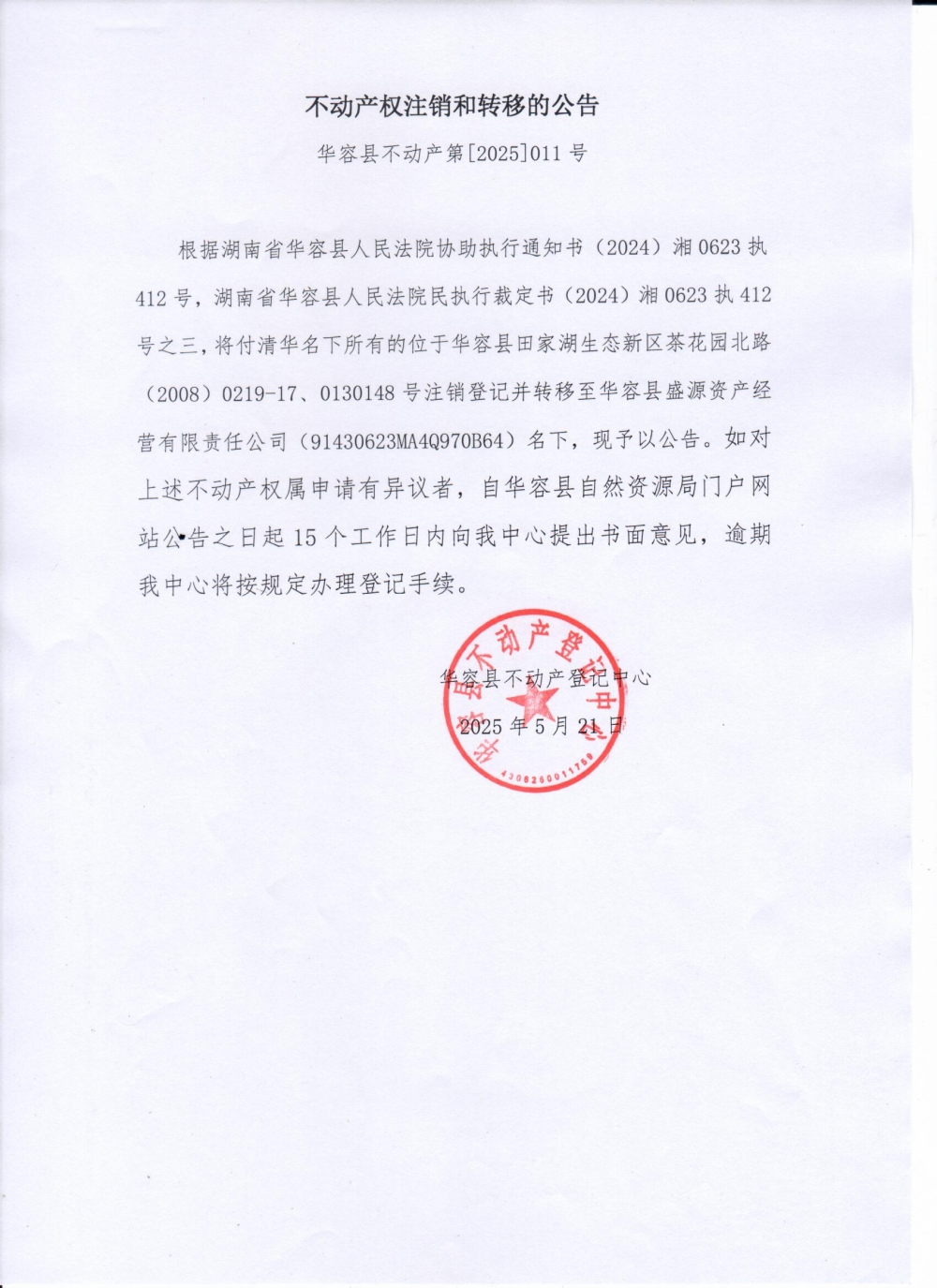 不动产权注销和转移的公告(付清华转华容县盛源资产经营有限责任公司 )