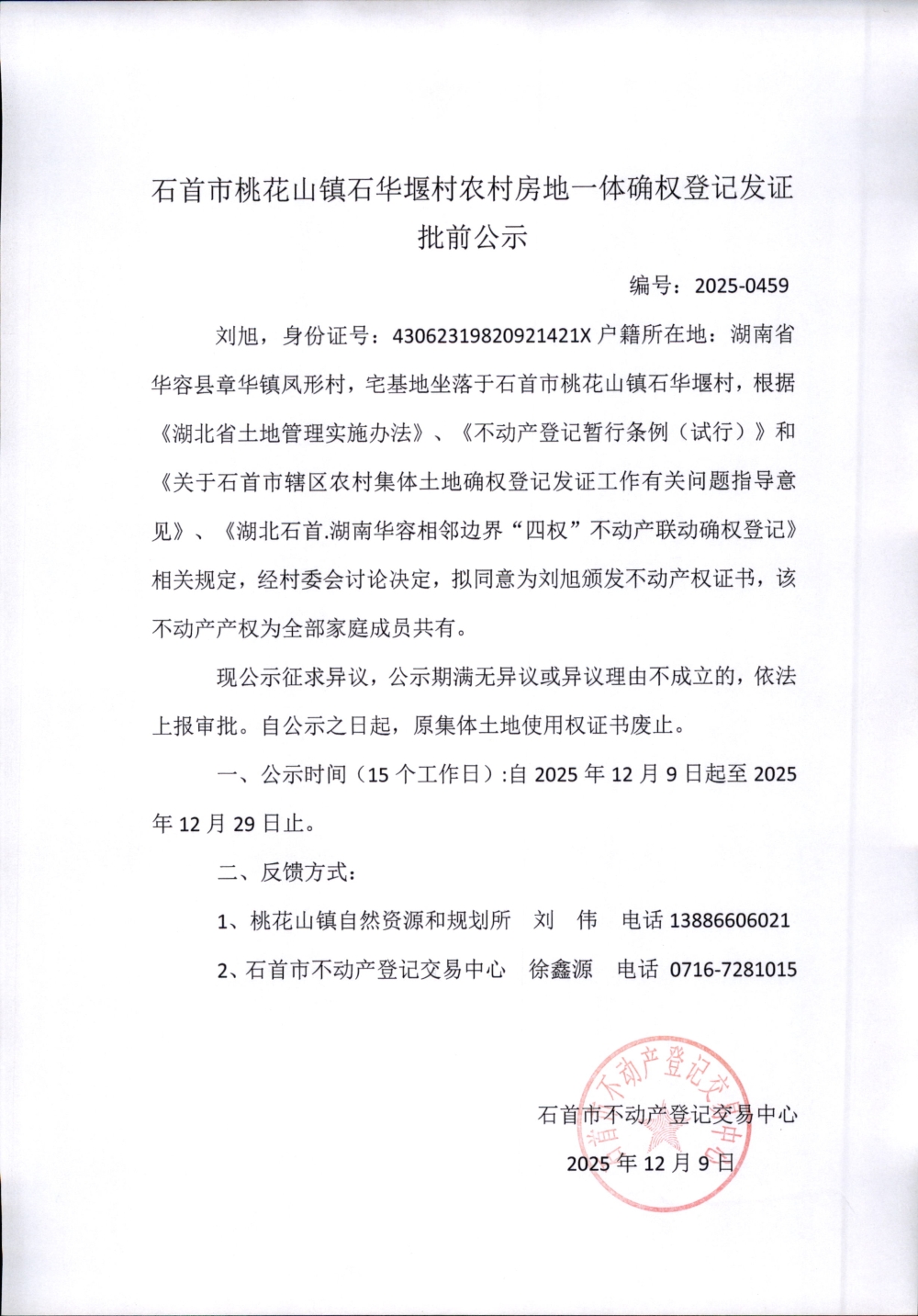 石首市桃花山镇石华堰农村房地一体确权登记发证(刘旭)