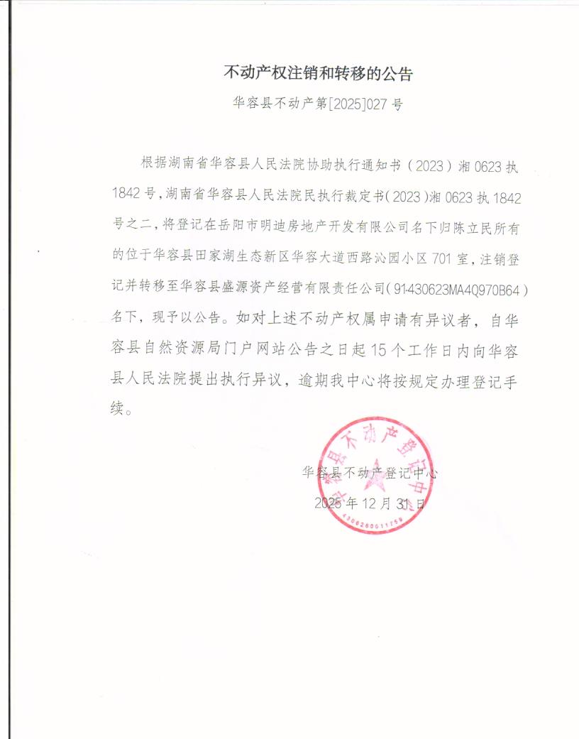 不动产权证注销和转移的公告(陈立民转盛源)