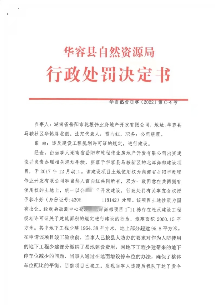 华自然资罚字(2022)第C-4号 岳阳市乾程伟业房地产开发有限公司违法建设案