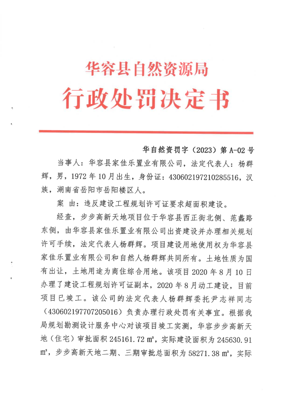 华自然资罚字(2023)第A-02号 杨群辉违反建设工程规划许可证要求超面积建设案