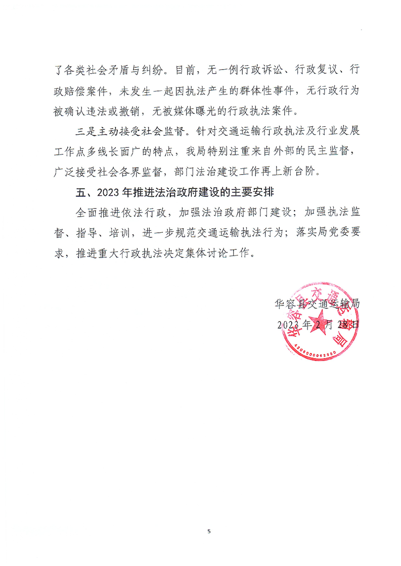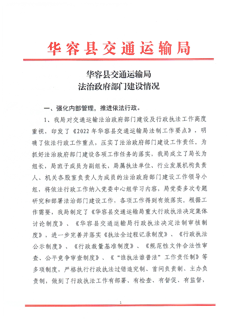 华容县交通运输局 法治政府部门建设情况