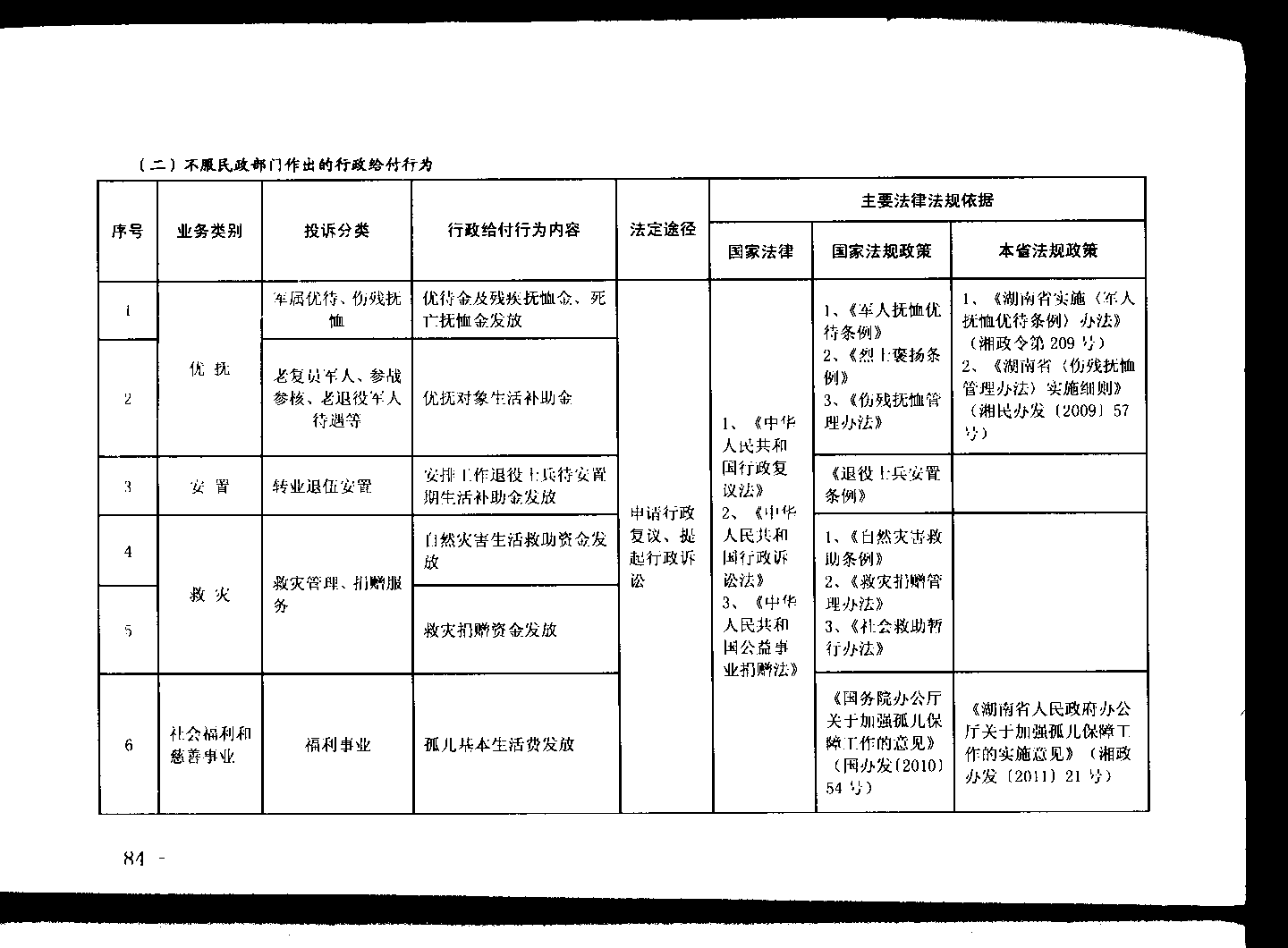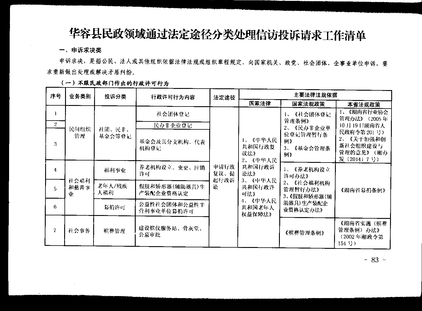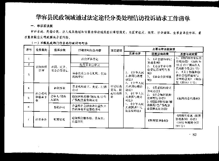 华容县民政领域通过法定途径分类处理信访投诉请求工作清单(一)