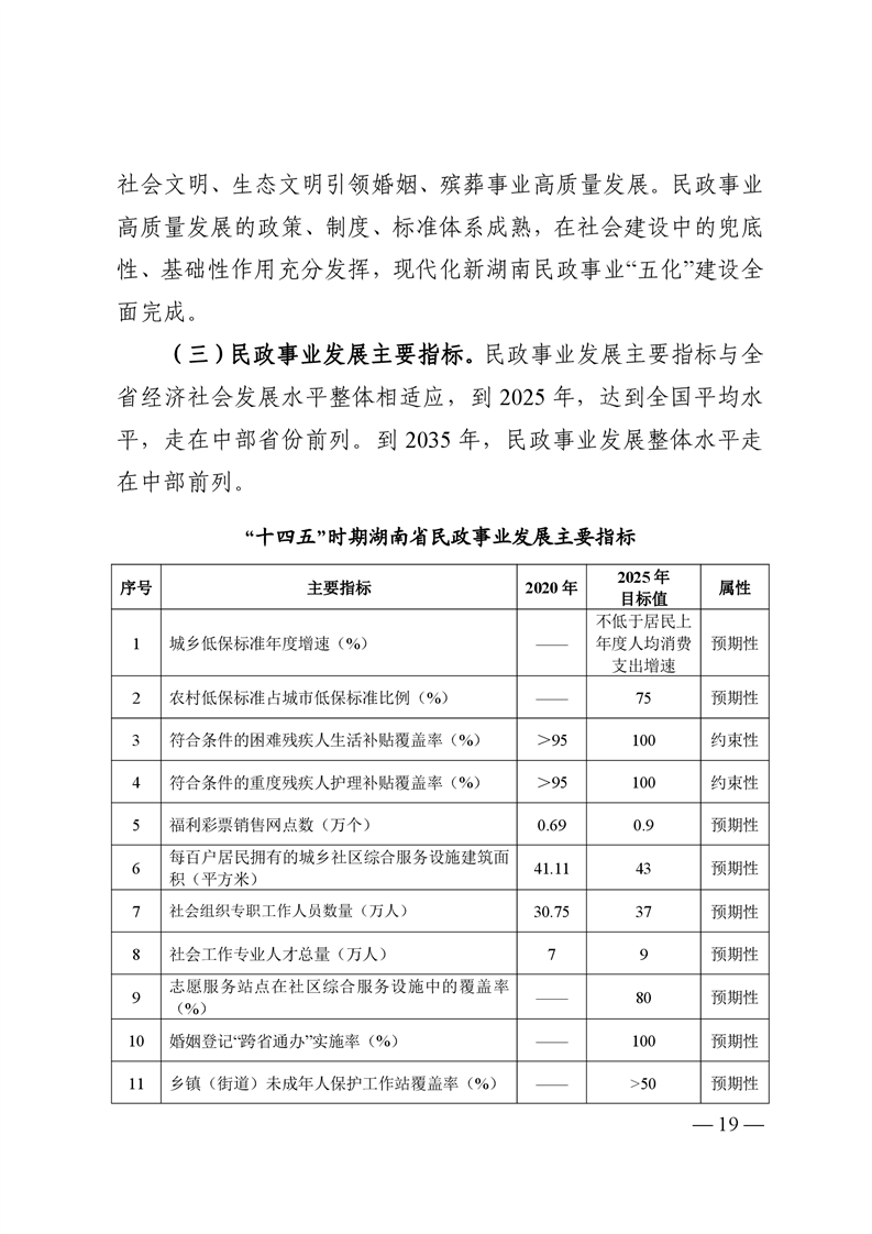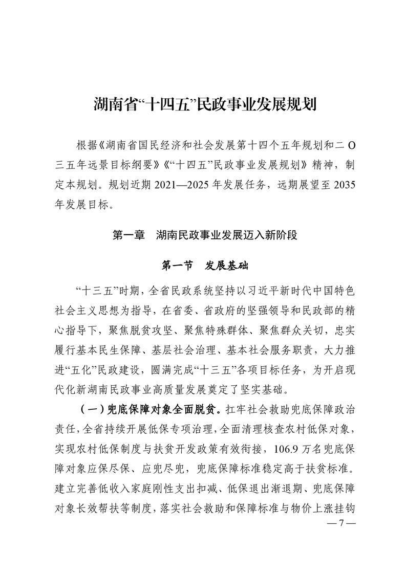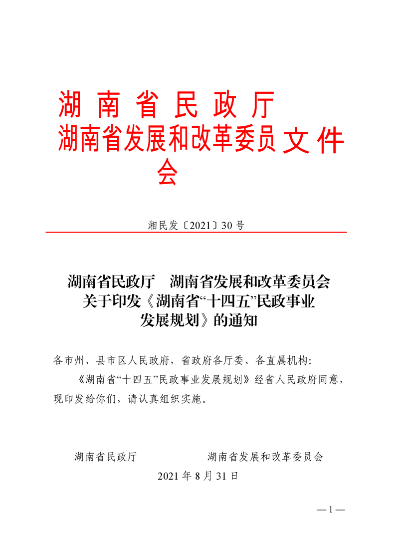 湖南省民政厅 湖南省发展和改革委员会 关于印发《湖南省“十四五”民政事业 发展规划》的通知