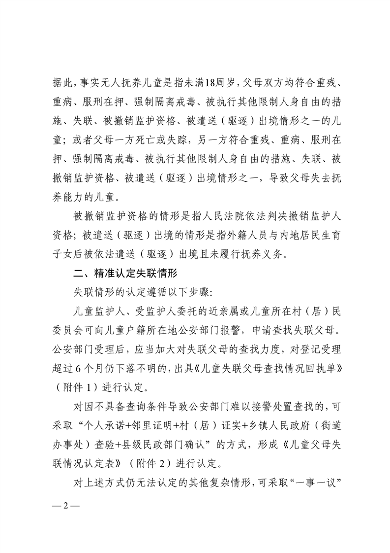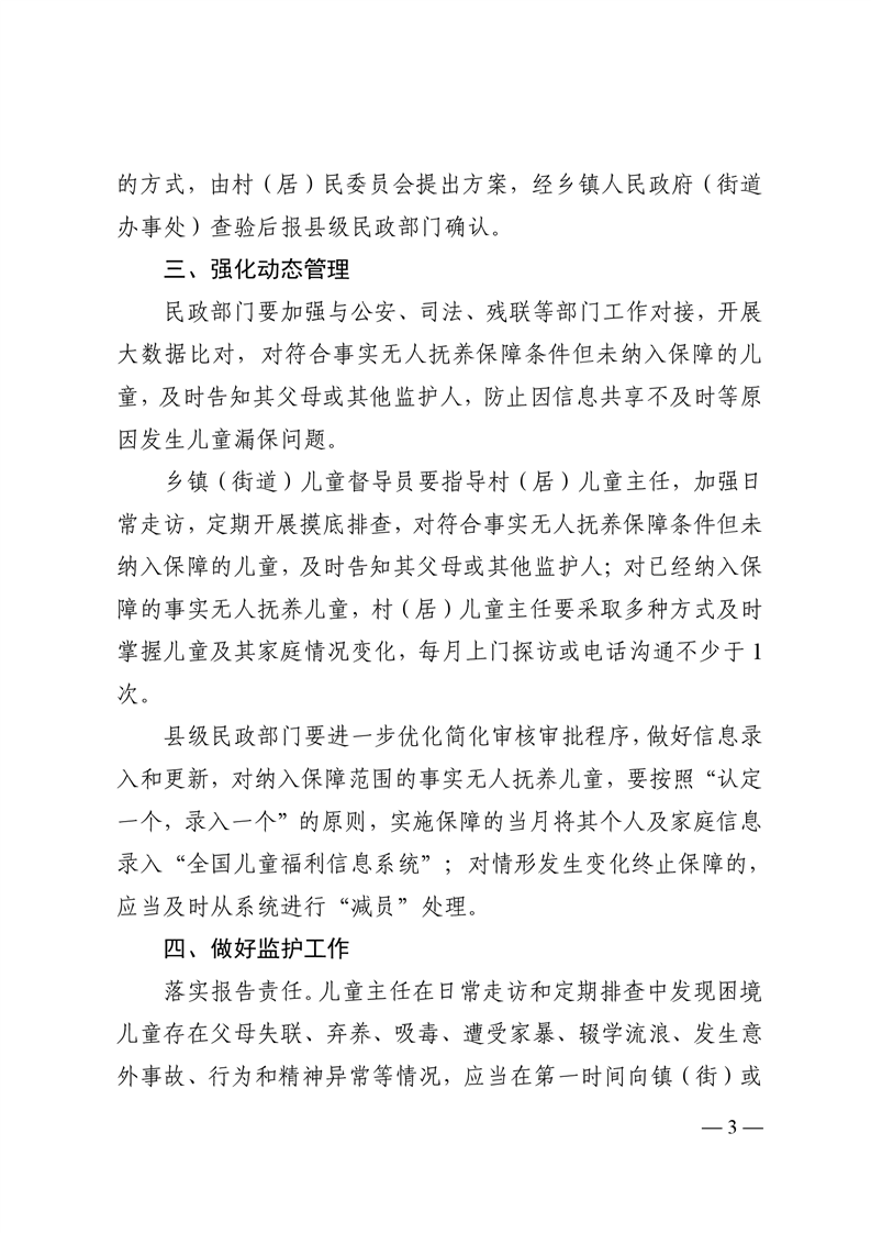关于切实做好事实无人抚养儿童保障 有关工作的通知
