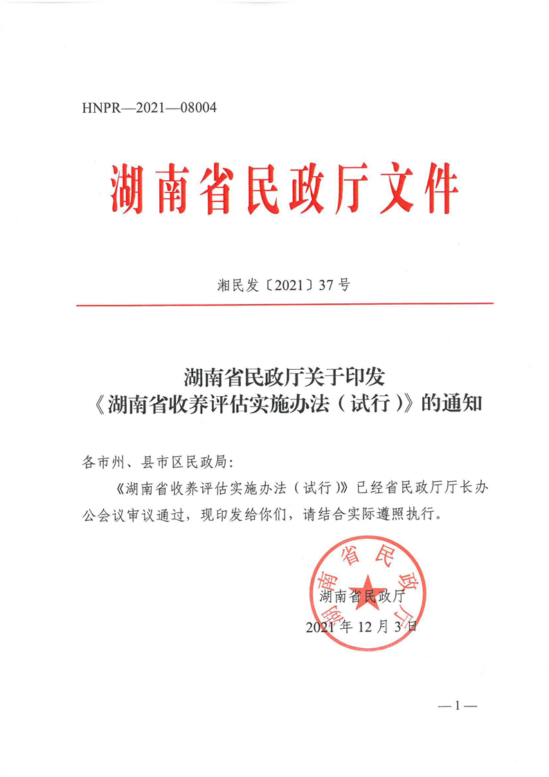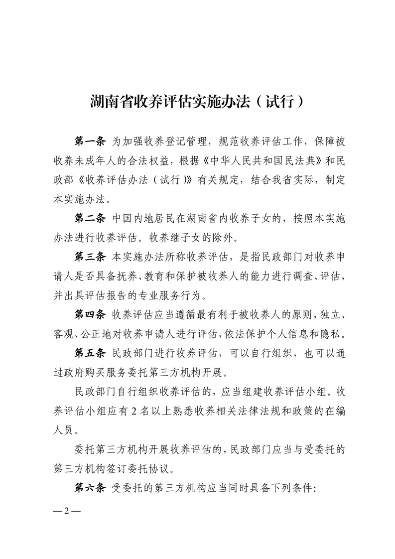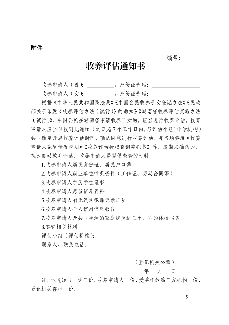 湖南省民政厅关于印发《湖南省收养评估实施办法(试行)》的通知