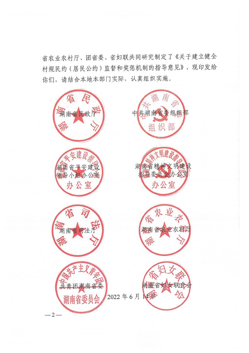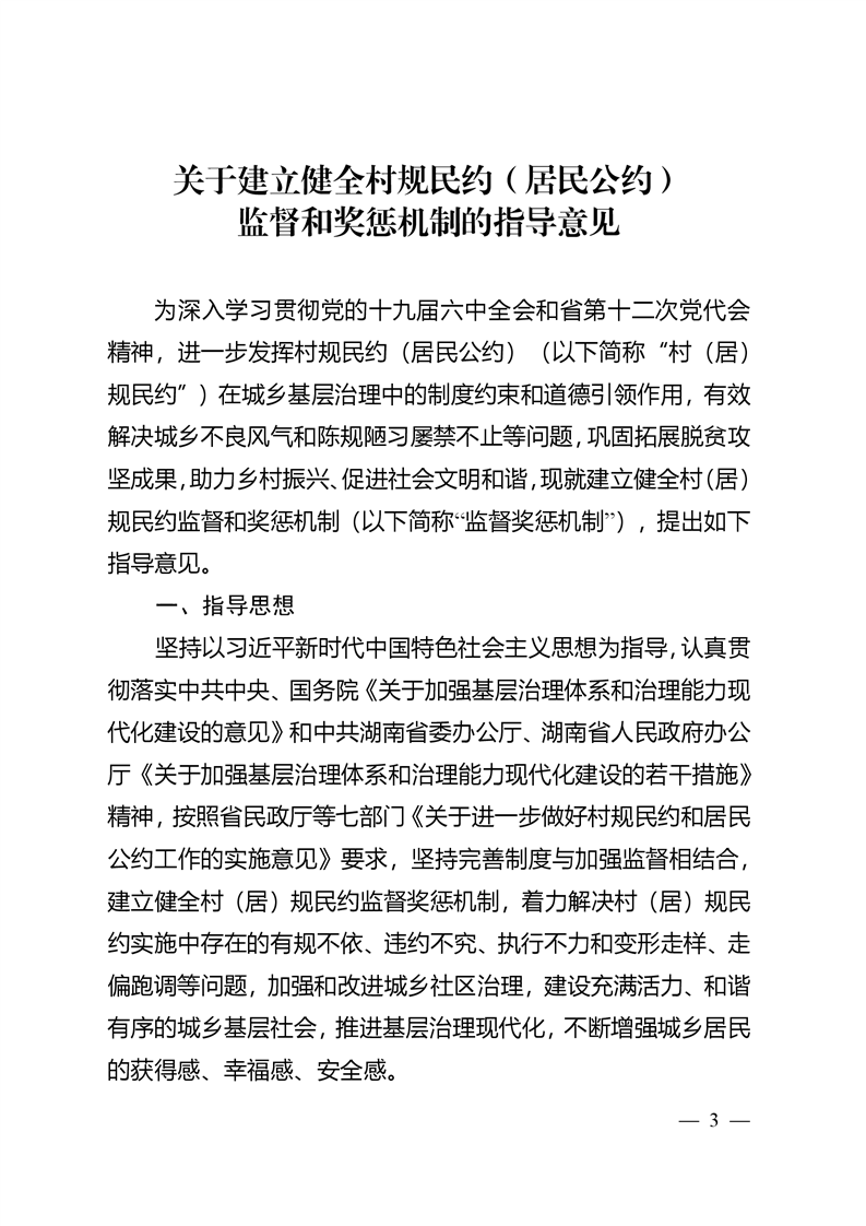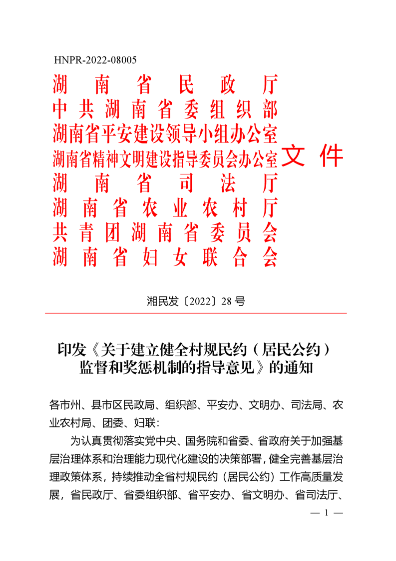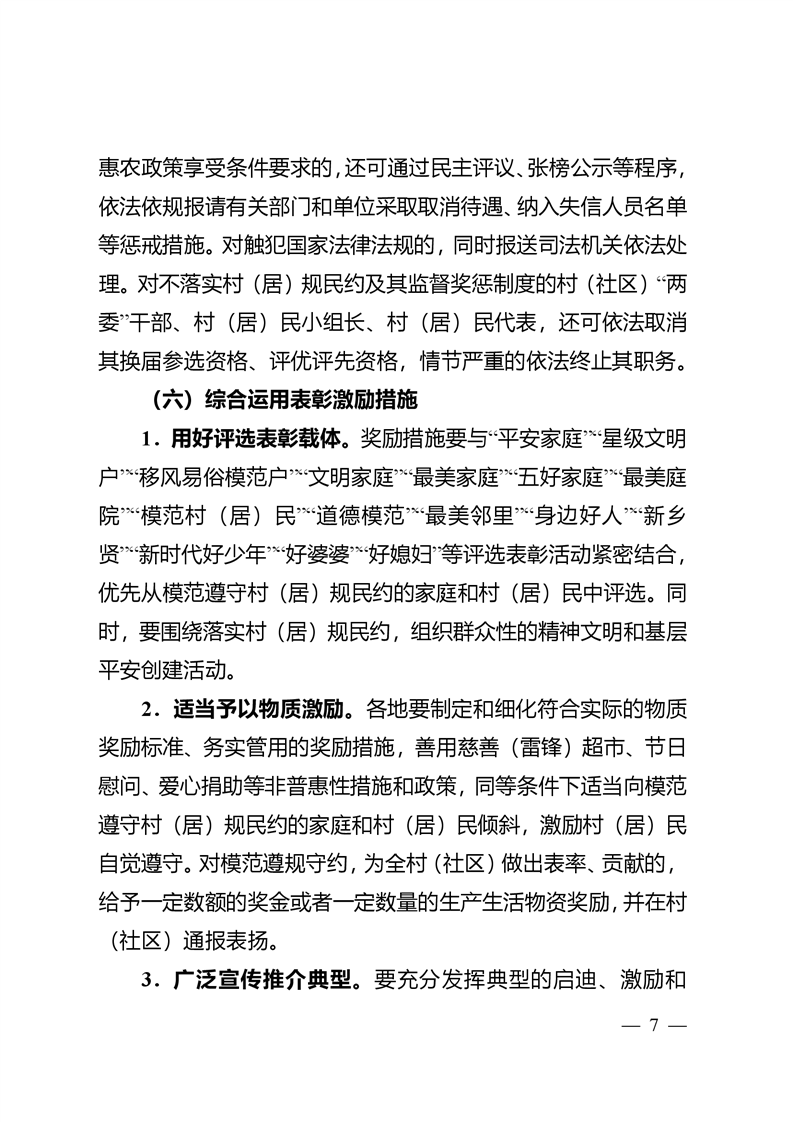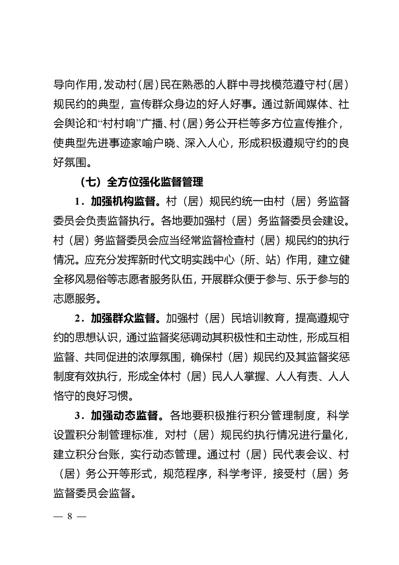 省民政厅等8部门关于建立健全村规民约(居民公约)执行监督和奖惩机制的指导意见