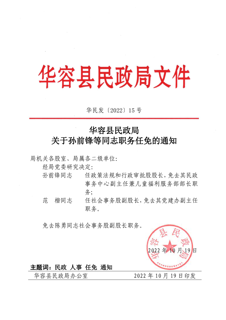 关于孙前锋等同志职务任免的通知
