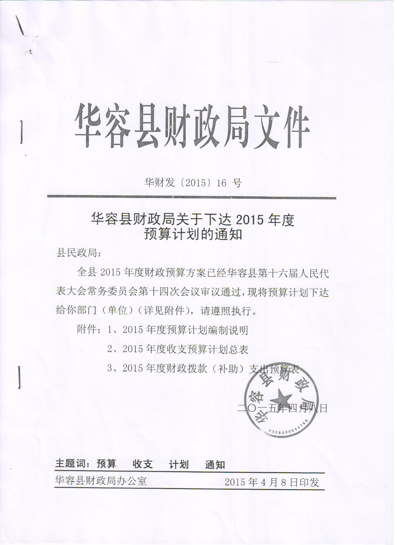 2015年度财务预算计划