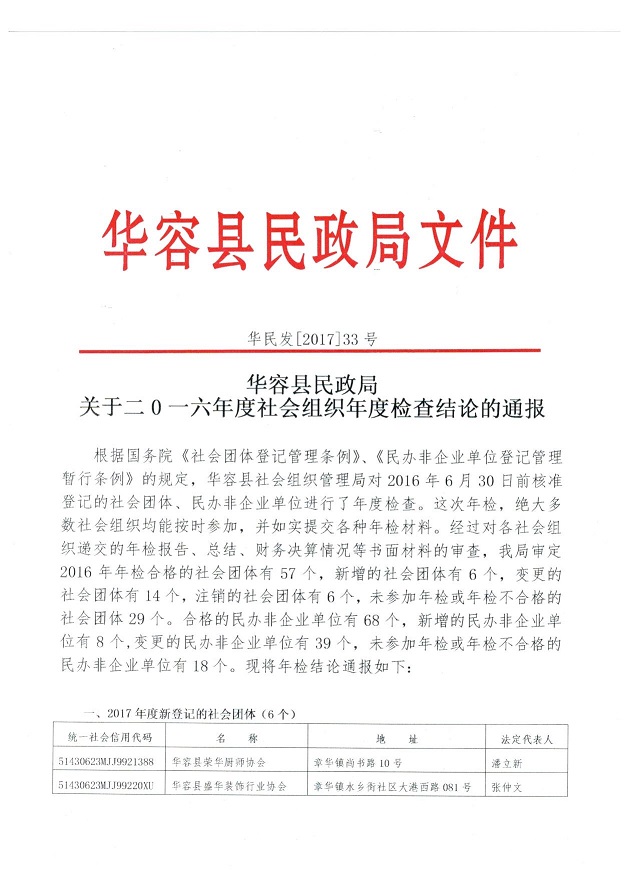 华民发[2017]33号