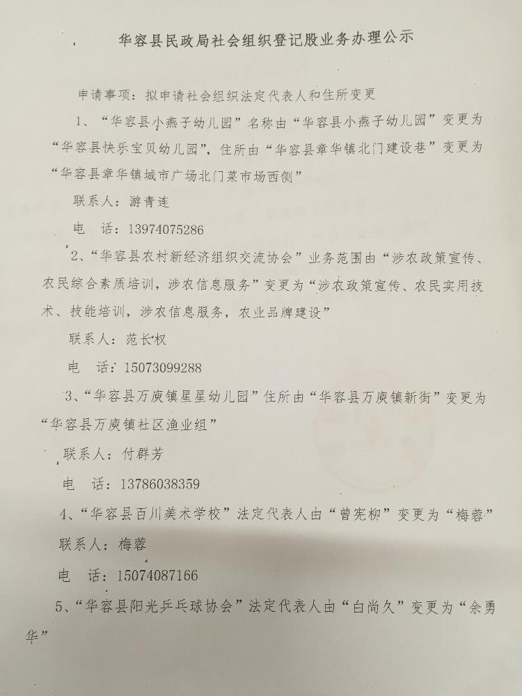 华容县民政局社会组织名称登记股业务办理公示(四)