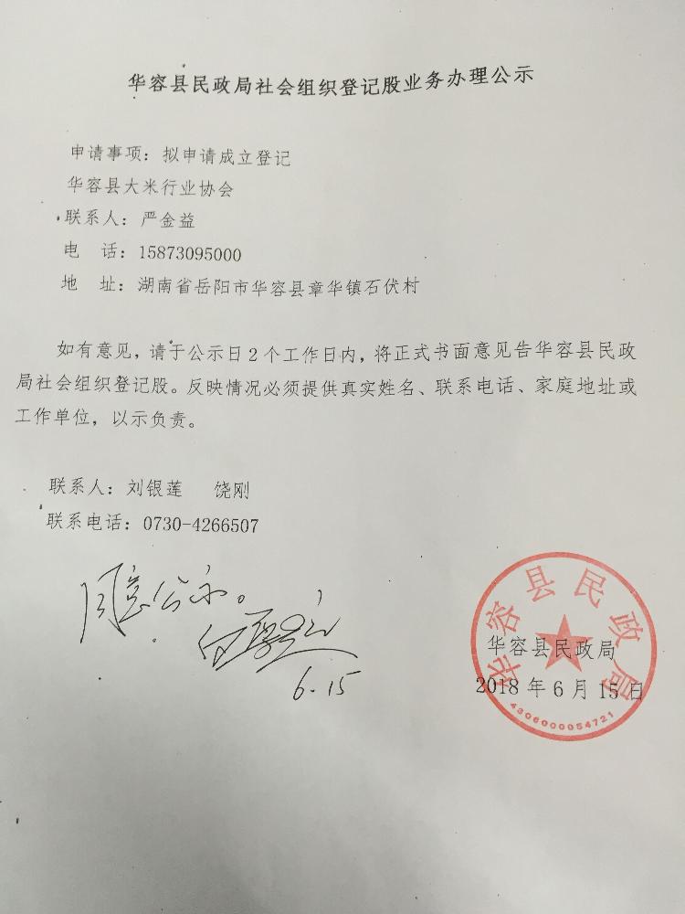 华容县民政局社会组织名称登记股业务办理公示(五)