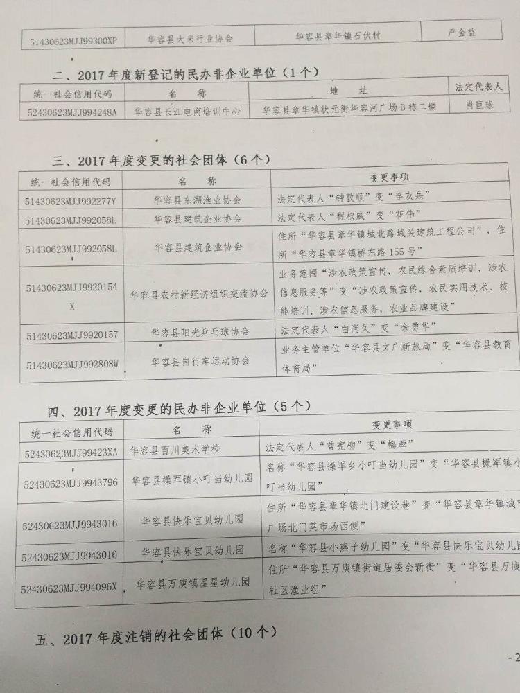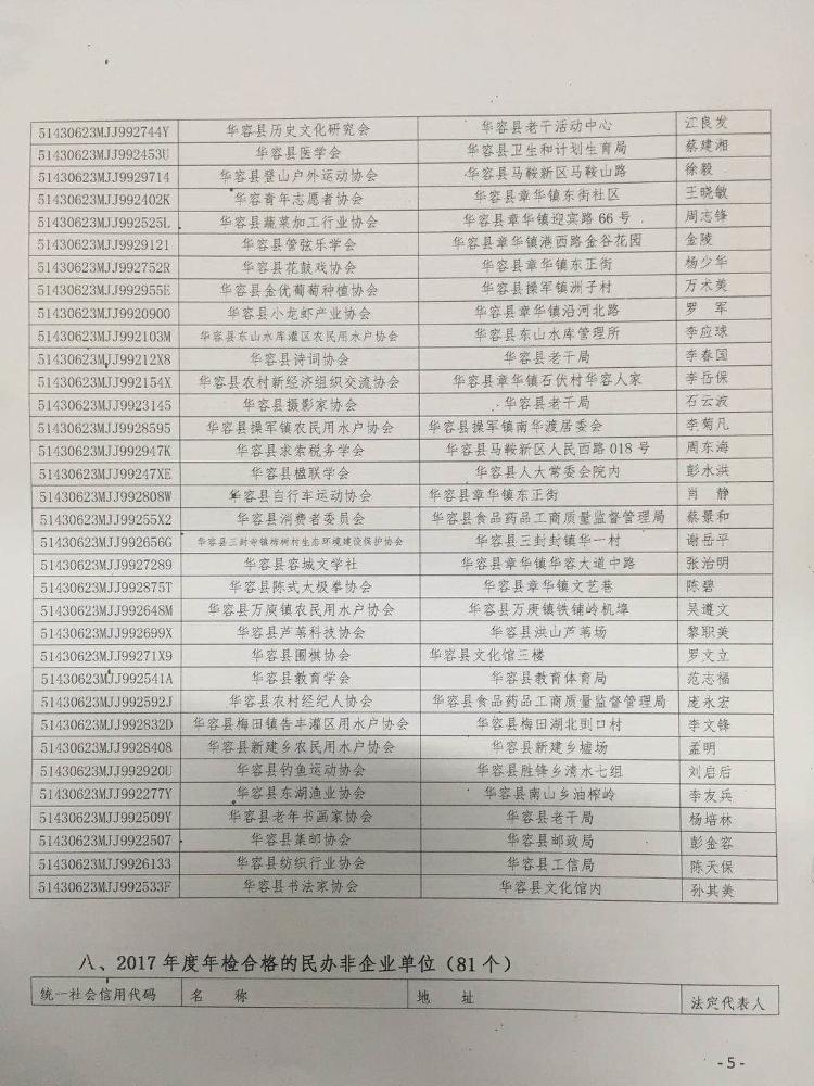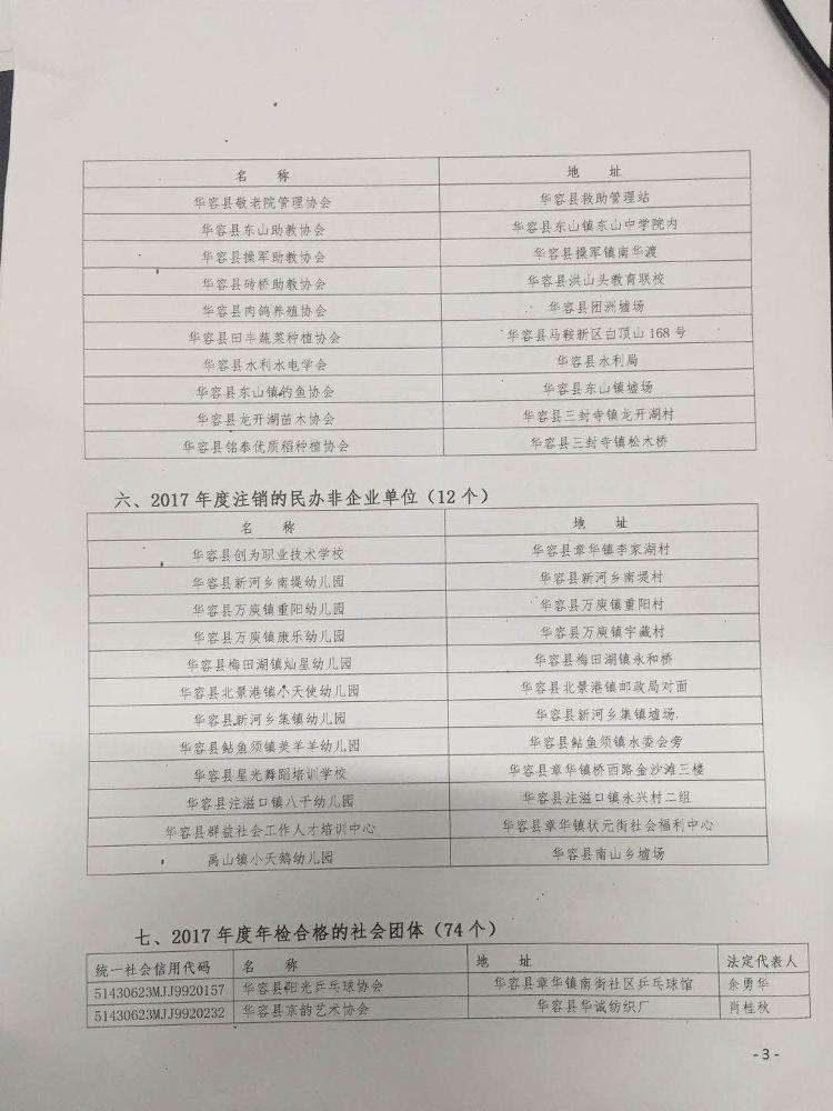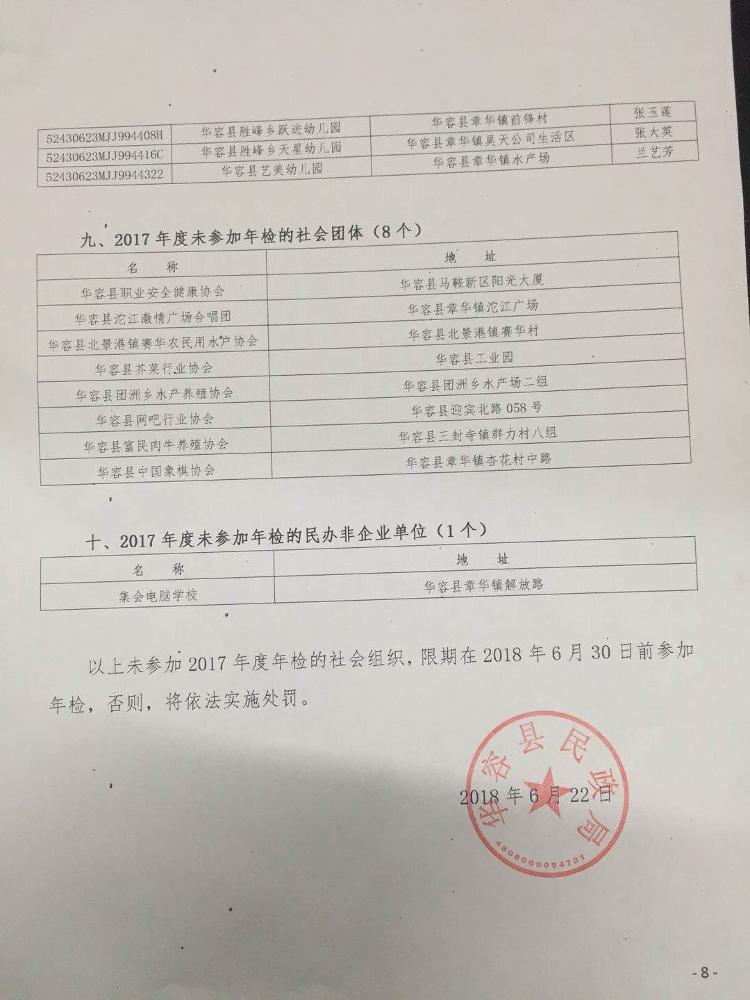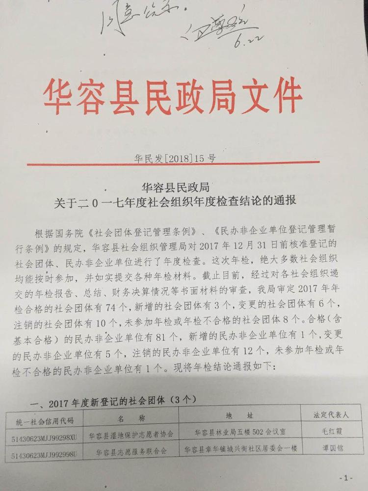 华容县民政局 关于二0一七年度社会组织年度检查结论的通报