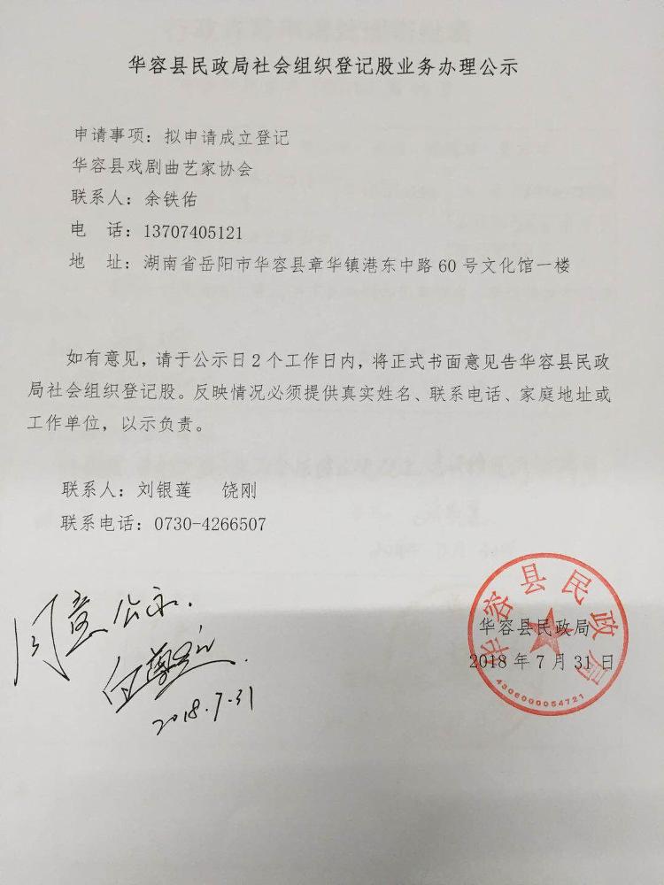 华容县民政局社会组织名称登记股业务办理公示(七)