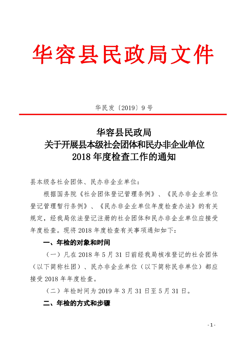关于开展县本级社会团体和民办非企业单位2018年度检查工作的通知