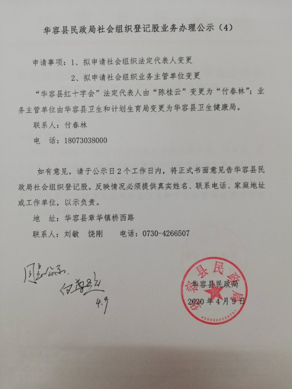 华容县民政局社会组织登记股业务办理公示(4)