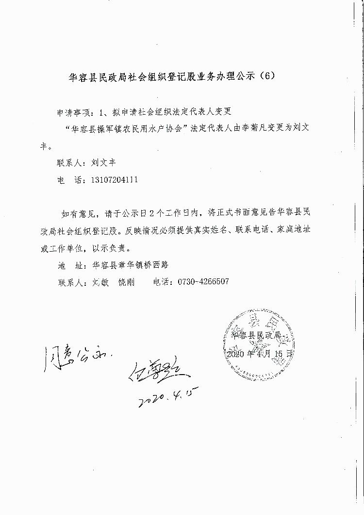 华容县民政局社会组织登记股业务办理公示(6)