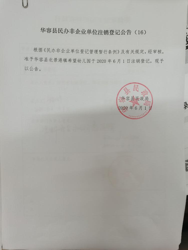 华容县民办非企业单位注销登记公告(16)