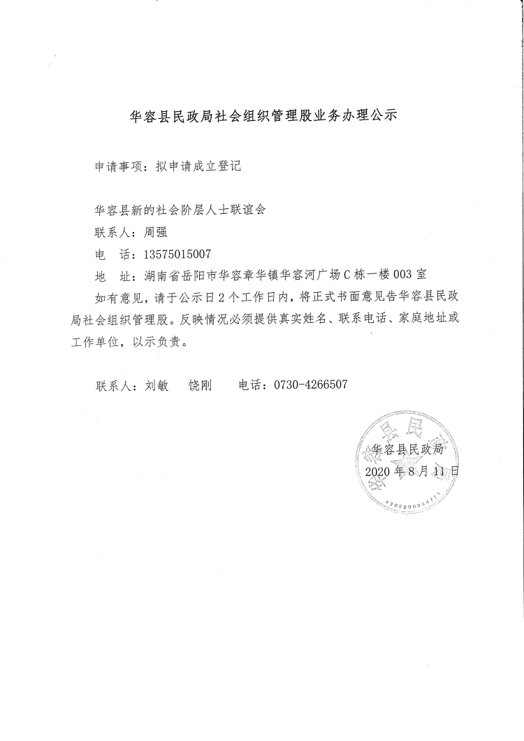 华容县民政局社会组织管理股业务员办理公示(二)