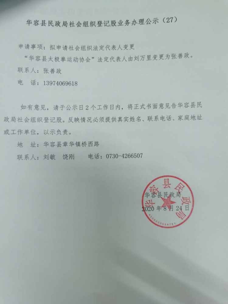 华容县民政局社会组织登记股业务办理公示(27)