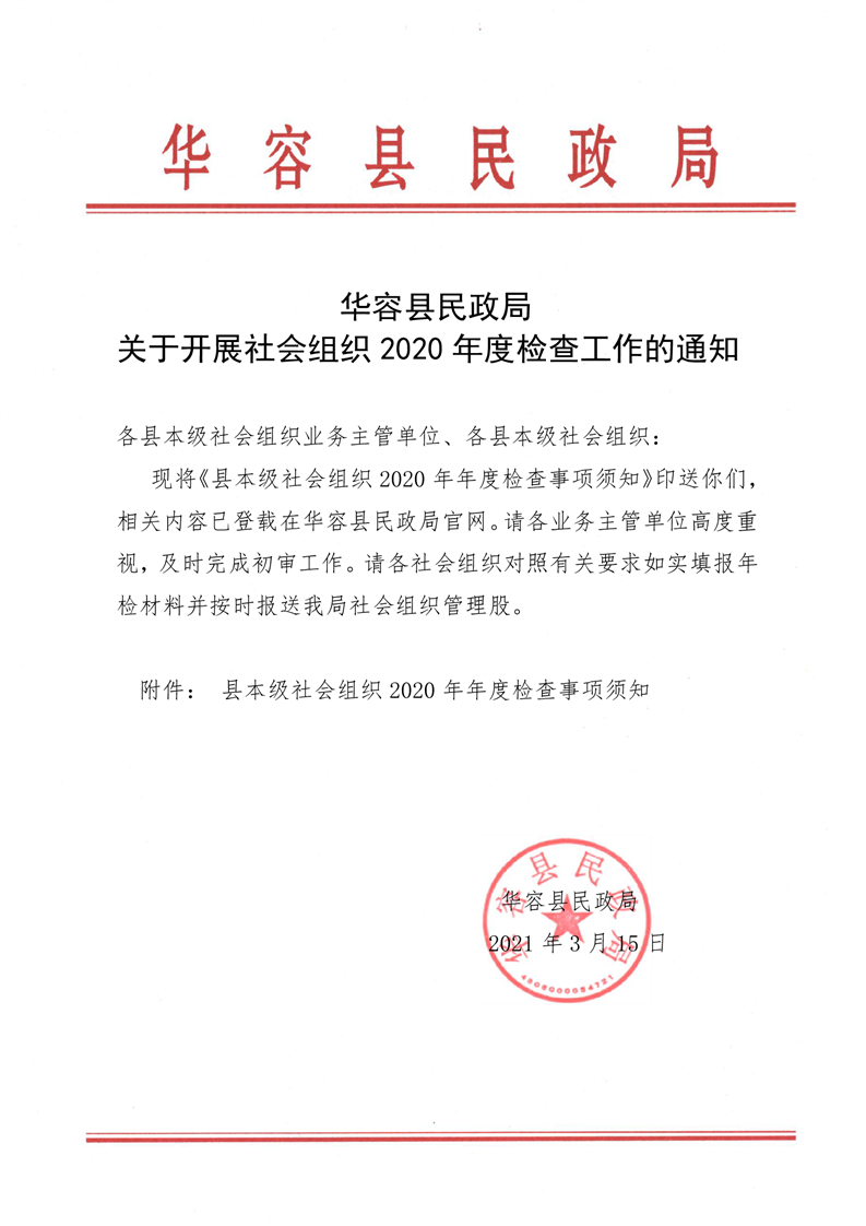 华容县民政局关于开展社会组织2020年度检查工作的通知