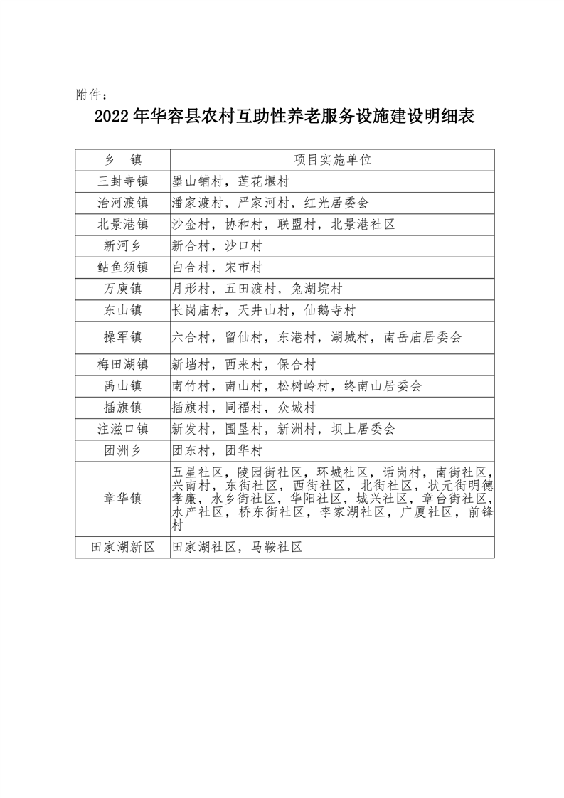 华容县民政局关于2022年建设“农村互助性养老服务设施” 市级重点民生实事任务完成情况公示