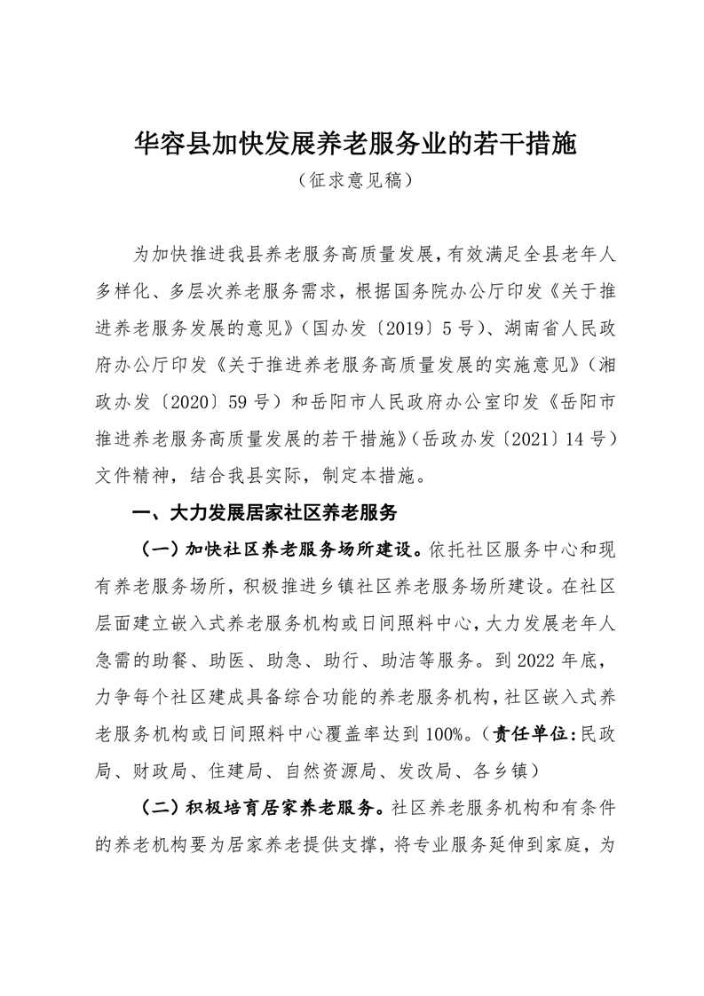 关于《华容县加快发展养老服务业的若干措施》公开征求意见的通知