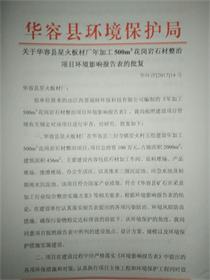 关于华容县星火板材厂年加500立方花岗岩石材整治建设环境影响评价报告表的回复