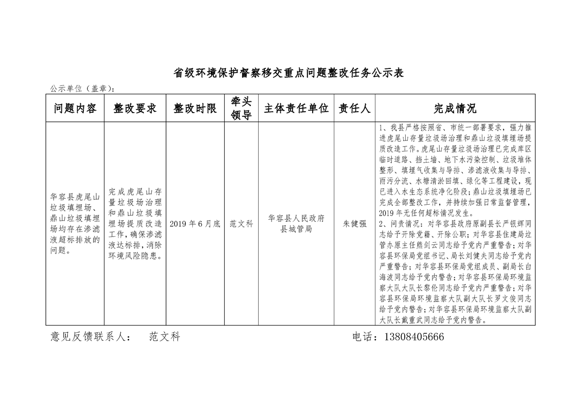 省级环境保护督察移交重点问题整改任务公示表2