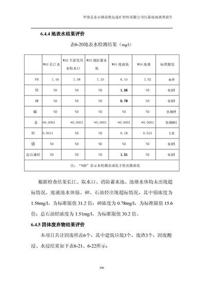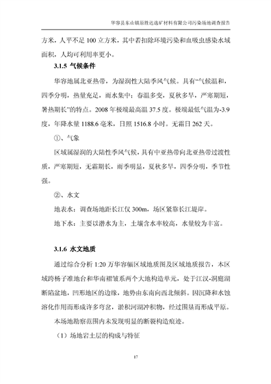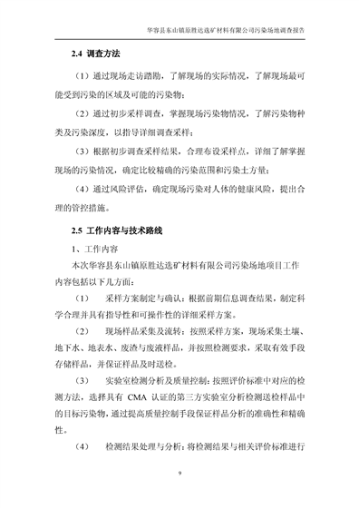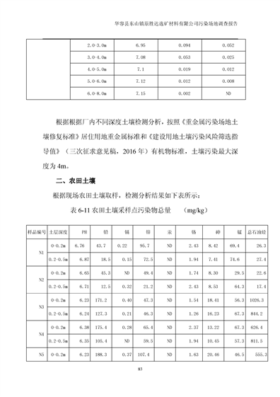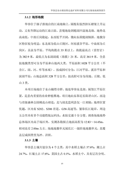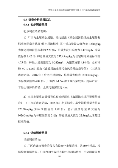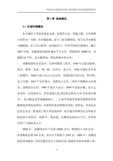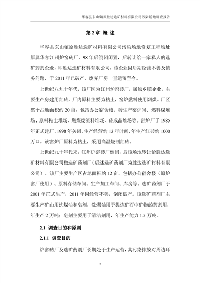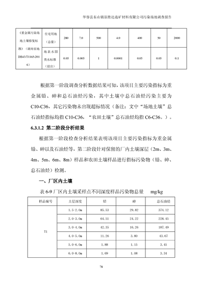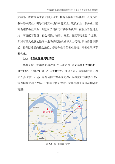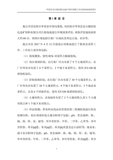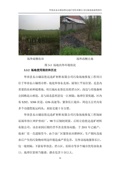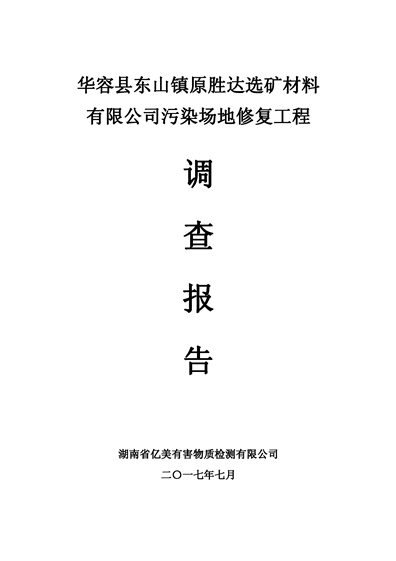 华容县东山镇原胜达选矿材料有限公司污染 场地 修复工程调查报告