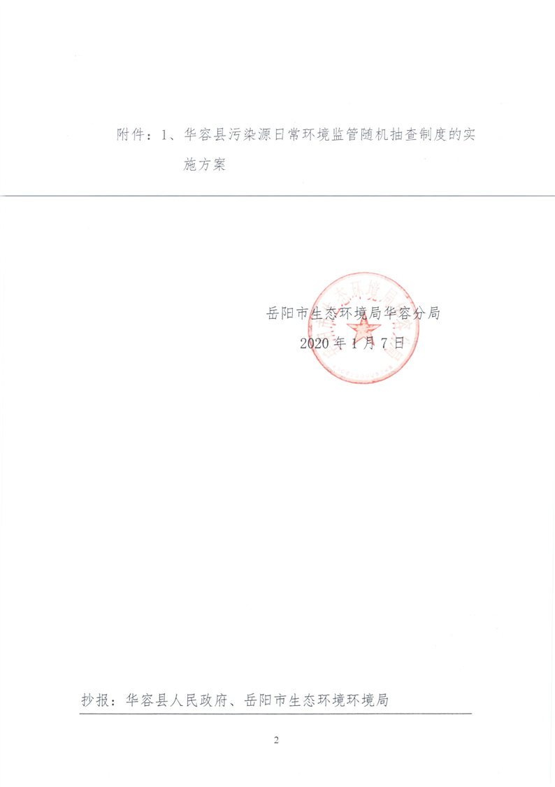 2020年华容县污染源日常环境监管随机抽查制度的实施方案