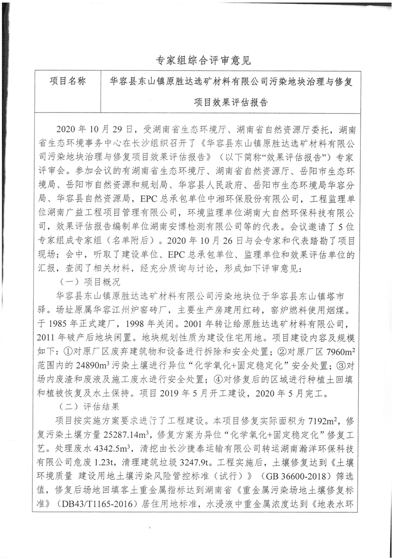 华容县东山镇原胜达选矿材料有限公司污染地块治理与修复项目效果评估报告