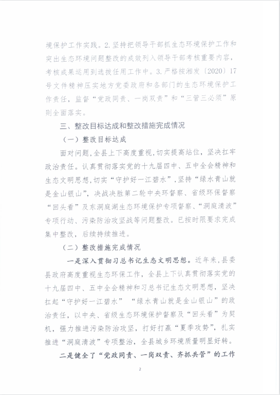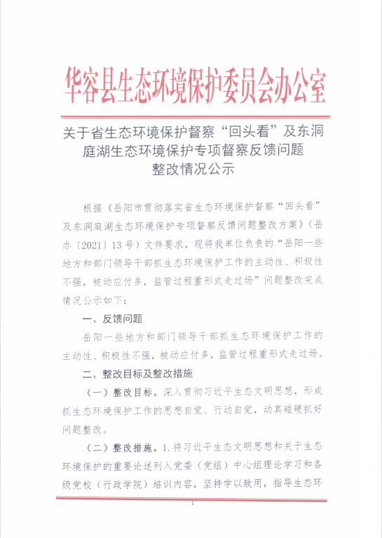 关于省生态环境督查“回头看”及东洞庭湖生态环境保护专项督查反馈问题整改情况公示