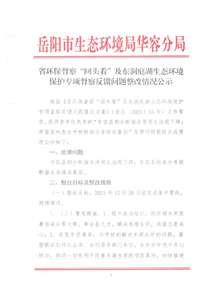 省环保督察“回头看”及东洞庭湖生态环境保护专项督察反馈问题整改情况公示