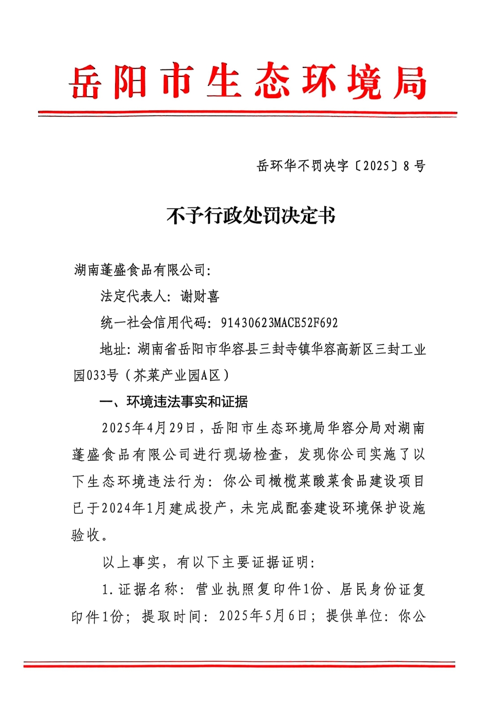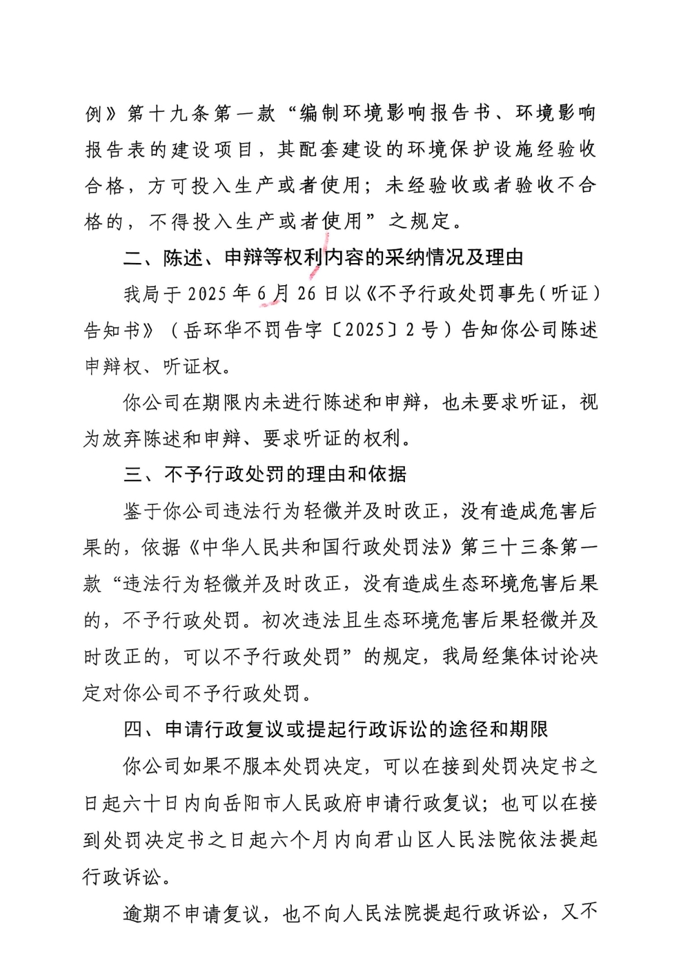 岳环华不罚决字〔2025]8号