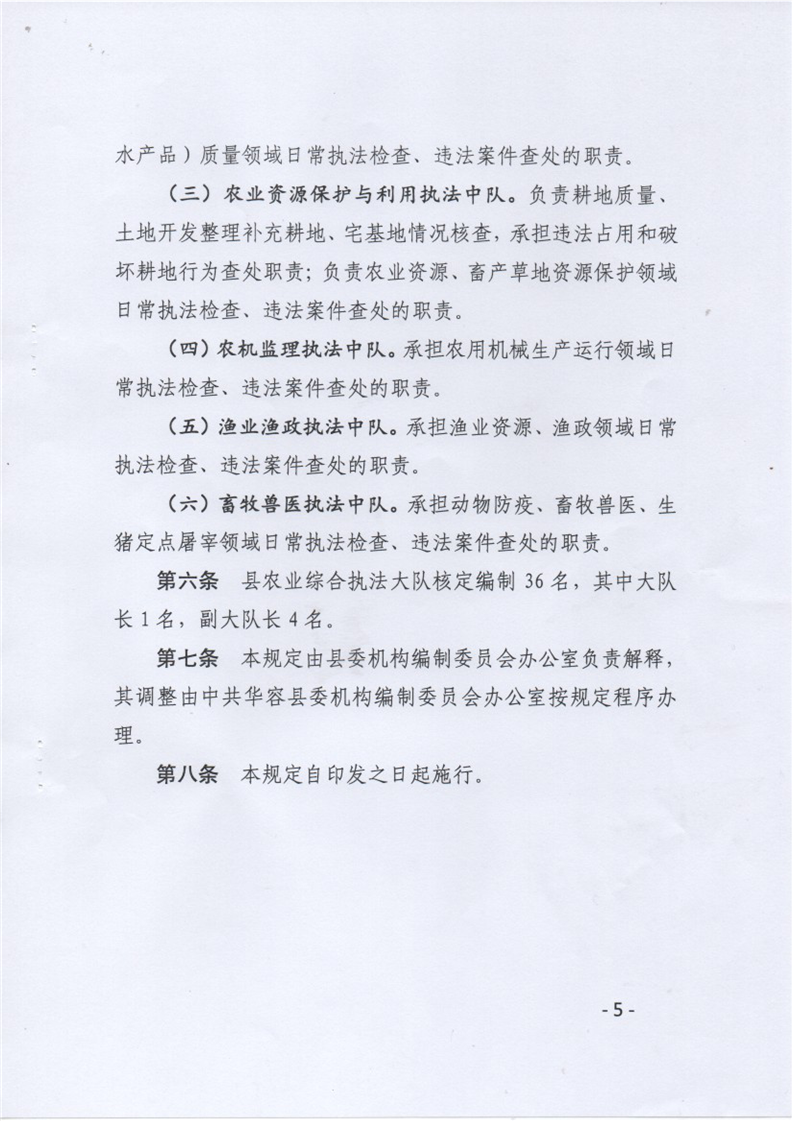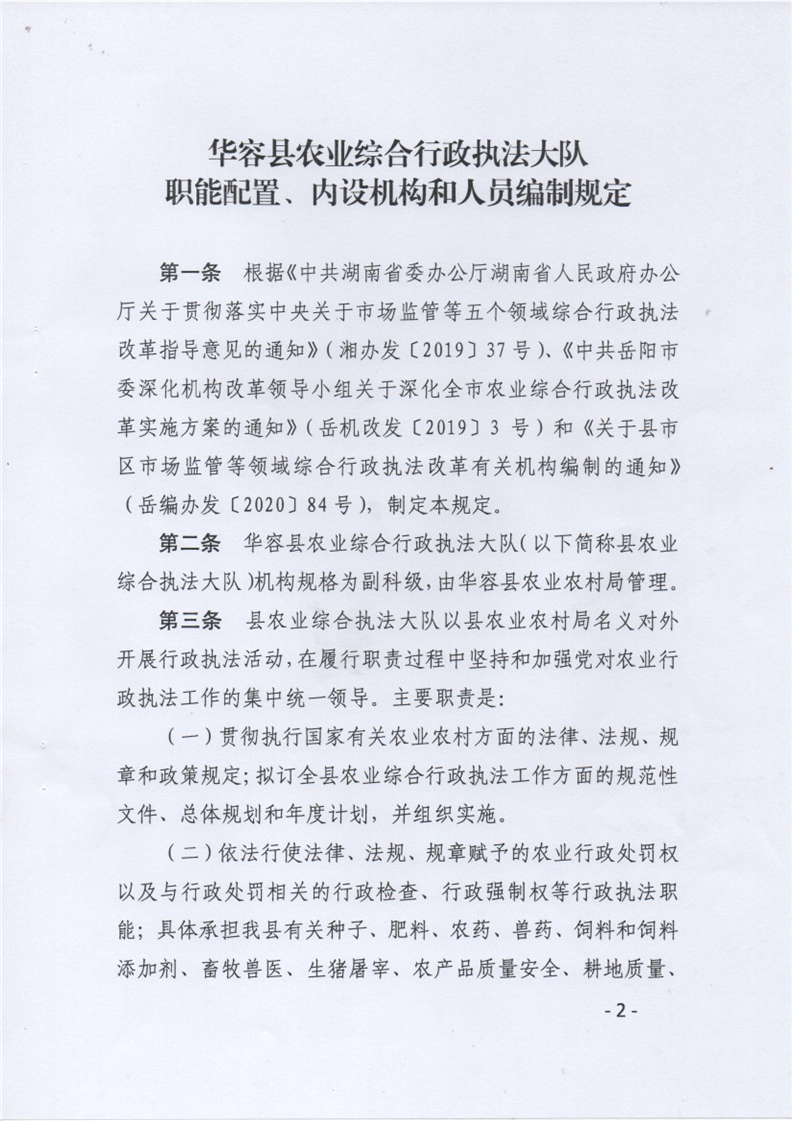 华容县农业综合行政执法大队职能配置、内设机构和人员编制规定
