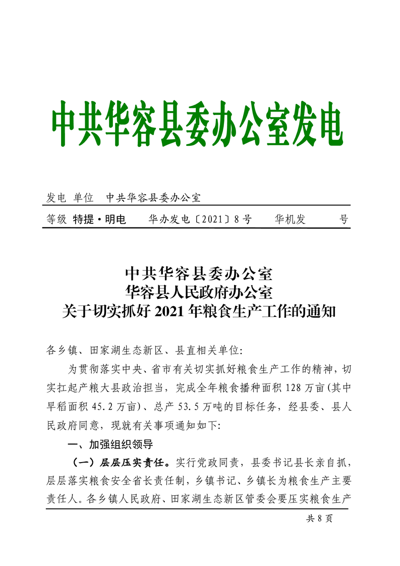 华办发电(2021)8号(关于切实抓好2021年粮食生产工作的通知)